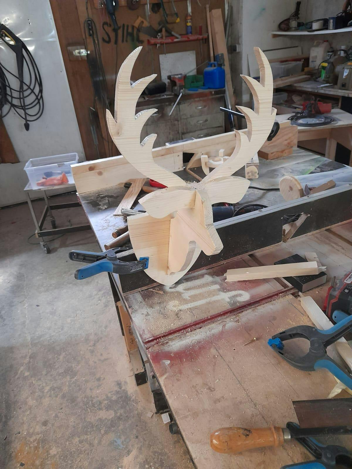 Hallo Frank, der Bauplan ist super, nicht nur weil er kostenlos ist. Ich schätze deine Arbeit dafür, macht nicht jeder. Und was Material angeht, das soll doch jeder selber für sich entscheiden. Wenn man mit Holz arbeitet (auch nur als Hobby), dann hat man eigentlich schon ein wenig Ahnung, welches Holz man dafür verwenden soll. Ich finde die Idee mit den Keilen einfach toll und auch günstig. Keine teuren Spanner kaufen müssen. Als Hobbyheimwerker braucht man das ja nicht jeden Tag und seinen Zweck erfüllts. Und auch Deine Werkbank ist einfach Spitzenklasse. Hier ein Bild von meiner Werkstatt. Gruß, Dieter