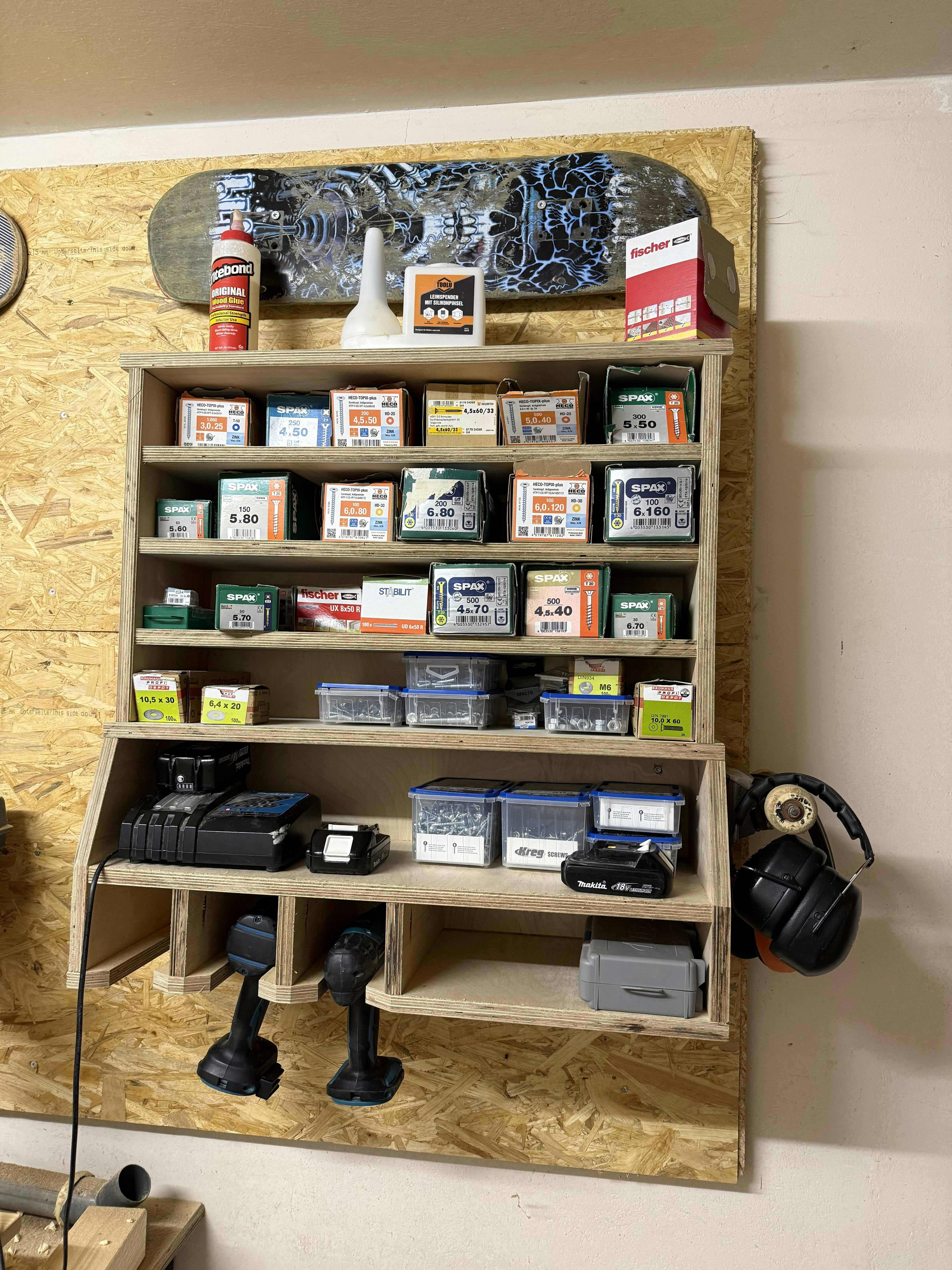 Tolle Anleitung. Ich habe die als Basis für mein Schraubenregal mit Akkuschrauberhalterung genommen. Danke dafür